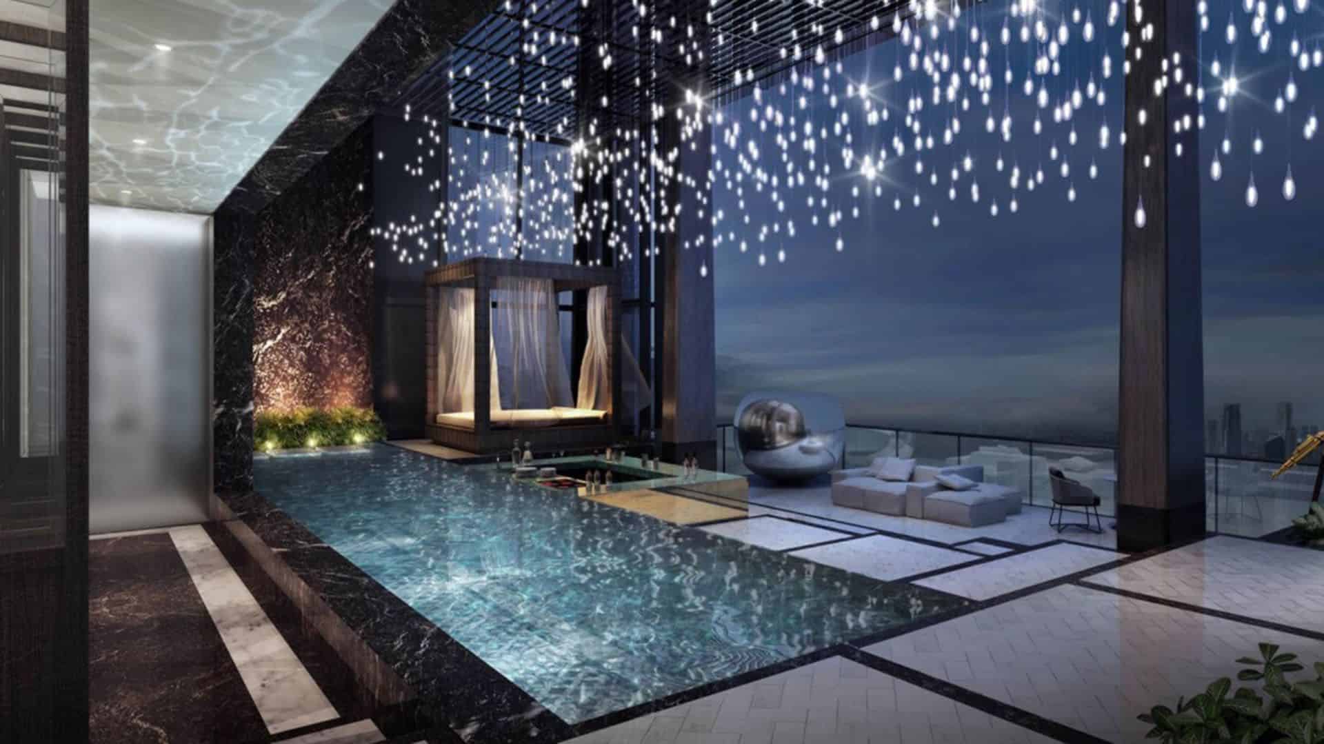 With a generous square-footage of 21,108 spread across three floors, the 5-bedroom property offers every luxury from an outdoor lap pool with views of the city and beyond, jacuzzi for the chillier occasions, rooftop terrace + cabana, obligatory bar facilities, 600-bottle wine cellar, two kitchens, screening room, and more. Wallich Residence also offers 24/7 butler service (professional chefs and bartenders also available).