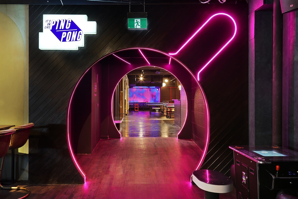 If that wasnโt enough, the owners have built a VR Playhouse with thousands of immersive games, alongside other automated and interactive tech experiences to mix old and new styles of competitive play. This sits alongside themed spaces ranging from an open-air patio and โbeachโ cabanas, to bookable private spots like the โBaby Got Backspinโ room and โBallerโs Penthouseโ.