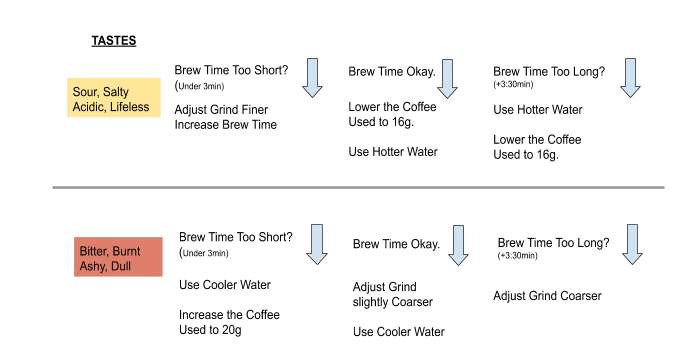 Consider adjusting to a finer grind and seeing if a longer brew time will improve the taste. On the reverse, if it’s too bitter without any sweetness, or tastes ashy, adjust your grinder for coarser grounds.