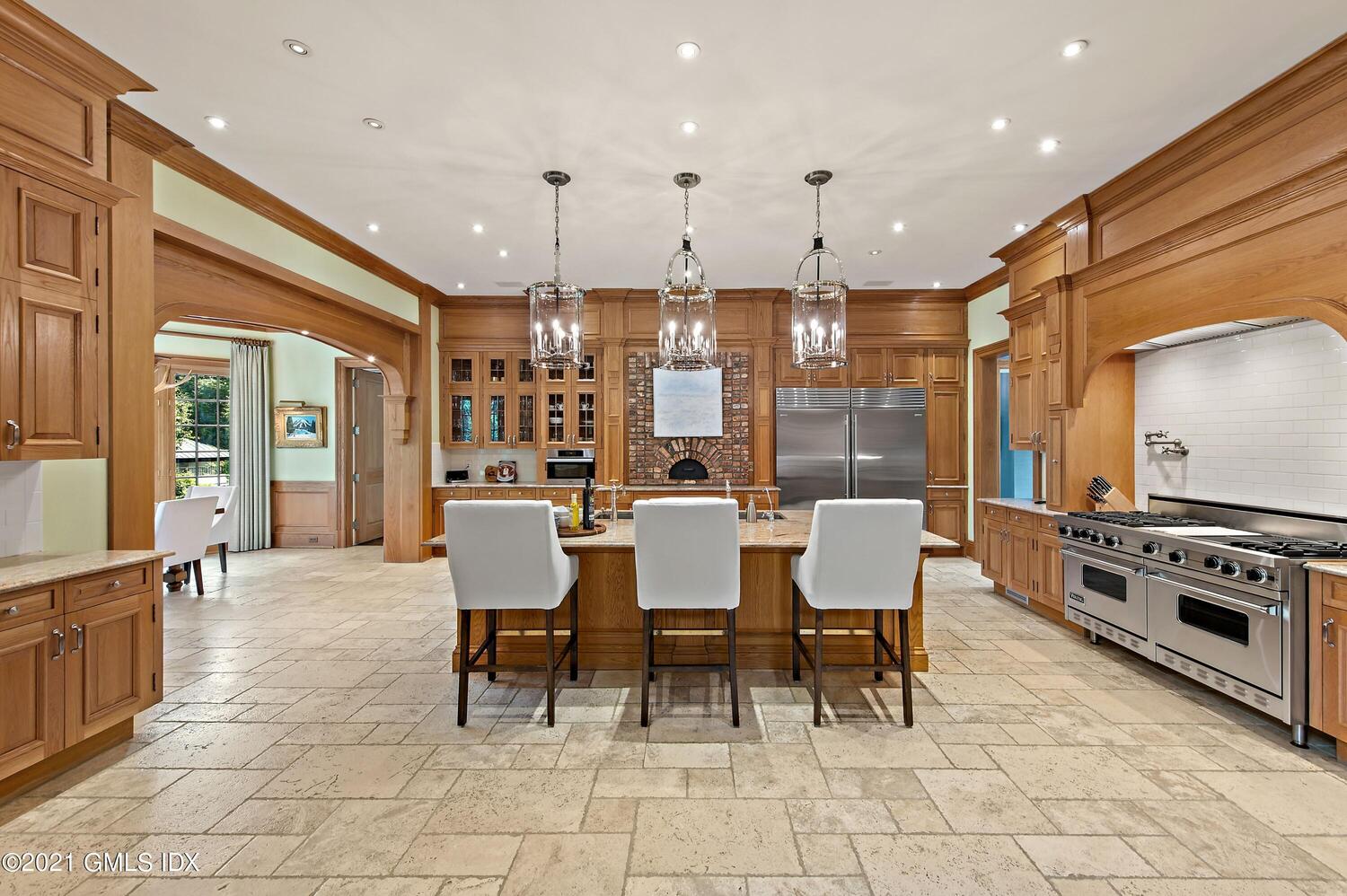Where Stonehill kicks it up a notch is in the gym with an indoor half-court, massage room, synthetic turf tennis court, dining area which can comfortably accommodate up to 40 guests, meticulously manicured gardens, and pleached linden tree-lined driveway. The grounds also include a four-bedroom guest house, three-bedroom cottage, and two-bedroom cottage.