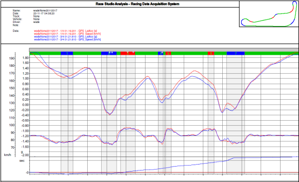 Aesthetics aside, the technical improvements of the Limited Edition are evident in the graph below. The blue and red line represent the standard and Limited Edition, respectively. The new breed is seen to smoke the former for speed whilst in the corner and exiting.