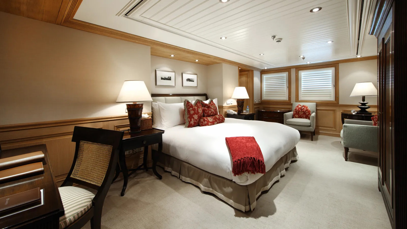 If lounging on a deck overlooking the sparkling waters of the Mediterranean doesnโt excite you, the vessel also features a heated jet pool that transforms into a dance floor, a cinema, a dive centre and even a beauty salon. It also has bulletproof and triple-laminated glass windows, so youโll be able to really relax while youโre onboard.