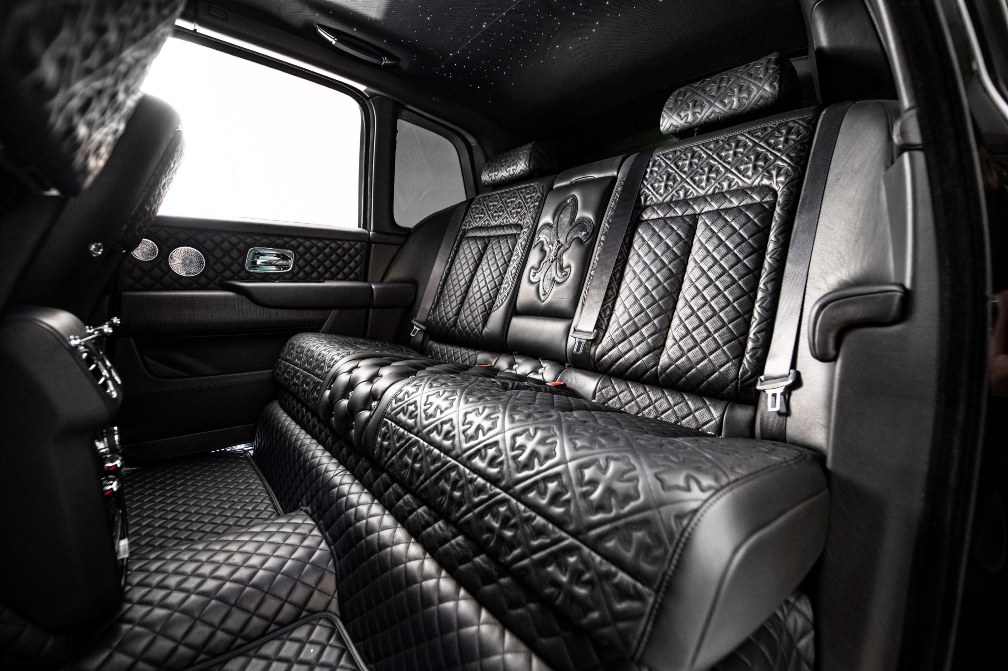 Several thoughts come to mind at a first glanceโฆ none of them positive. But you will have probably gathered as much from the headline alone. In stark contrast to everything Rolls-Royce stands for โ as well as a far more tasteful Phantom recently designed by Hermes for Japanese billionaire Yusaku Maezawa โ 6-Godโs Cullinan overwhelms the senses: diamond quilted leather, fleur-de-lis motifs, and Maltese crosses, all in line with Chrome Heartsโ signature neo-gothic aesthetic.