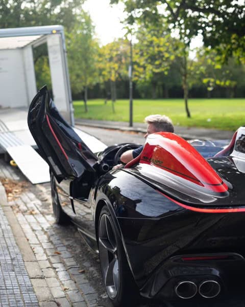 Ramsayโs new whip echos the stylistic elements of Enzo Ferrariโs 750 and 860 Monzaโs of the 1950s, with the choice of turning the car into a single-seater with a tonneau cover, or if heโs feeling lonely, the cover can be removed to fit a co-pilot.