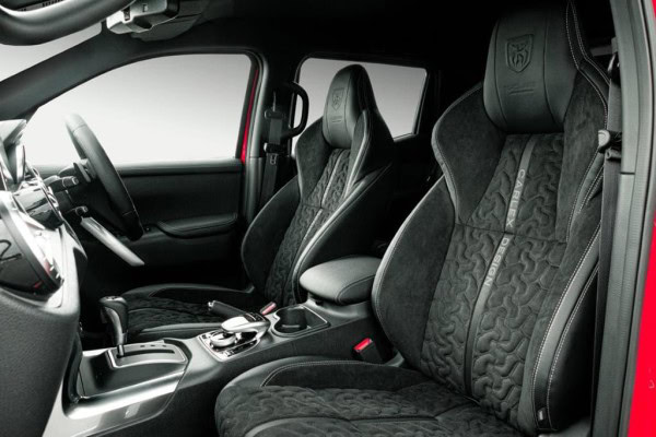 Inside, Nappa leather and Alcantara upholstery is peppered throughout, a product of Polish interior outfitters Carlex Design.