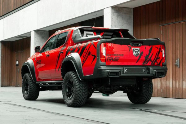 18-inch alloy wheels wrapped in Black Bear mud-terrain or all-terrain off-road tyres boast a wider track to match the beefy wheel-arch extensions. Buyers will also cop a hardened front bash plate, bonnet lip, headlight frames and LED light bar to round out a super aggressive front end.