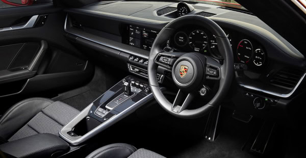 Aesthetically, the new harks back to the best of old. We see the return of a longer, more angular bonnet, with a slight scoop, which disappeared with the arrival of the 996 twenty years ago. Inside, a retro, analogue tachymeter takes pride of place above a long flat dash with a five-dial circular instrument cluster, also paying homage to the past. Sitting alongside the cluster is a seamless, and sizeable, 10.9-inch infotainment touchscreen but now without the very handy double pop-out cup holder beneath it, replaced by a single unit at the base of the spring cleaned centre console, sporting a sleek but stubby new shifter.
