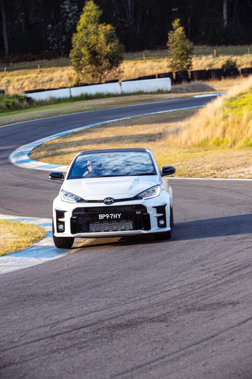 The GR Yaris Rallyeโs braking ability and sure-footedness through, and out of corners โ assisted by beefier front springs and stabilisation components and more efficient torque distribution from the front and rear Torsen limited slip differentials โ spiked my confidence, willing me to push it more. I drove each car back to back, sampling all three drive modes, and in the GR Yaris Rallye, in โTrack Modeโ, with equal 50/50 power split between the axles, I hit sweepers with more speed, got on the brakes later, maintained a more efficient racing line, and was generally just a better driver โ and thatโs compelling.