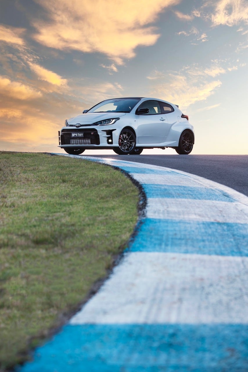 Outside of the technology woes, and the driving position, which is just a fraction too high, it was an undeniable hoot and an astonishing showcase of poise and pure unadulterated grip โ without sacrificing ride quality or day to day liveability. This brings me to the Toyota GR Yaris Rallye, a car that seeks to magnify handling, agility, stability, and control. The 200kW, 1.6 litre, turbocharged three cylinder engine hasnโt been touched, but the finer details, like suspension and cooling, have been finessed, and with the addition of lightweight performance parts, make the GR Yaris Rallye even quicker around a circuit.