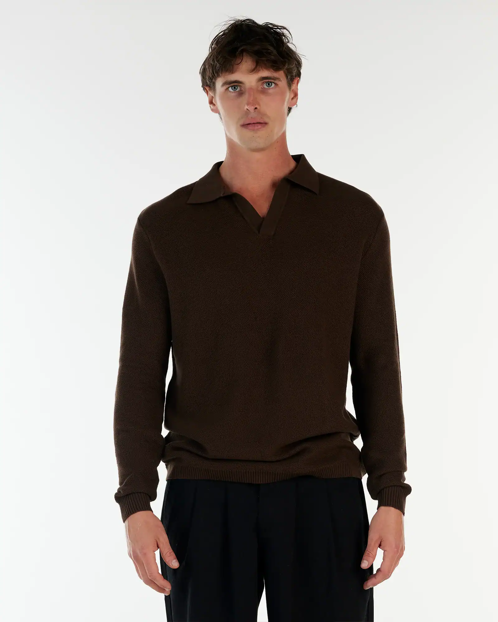 Crafted from 100% cotton and featuring a classic collar design without buttons, itโs available in both brown and black, making for an easy-wearing bit of kit that always looks good. Wear yours with moderately tapered trousers for a polished everyday look.