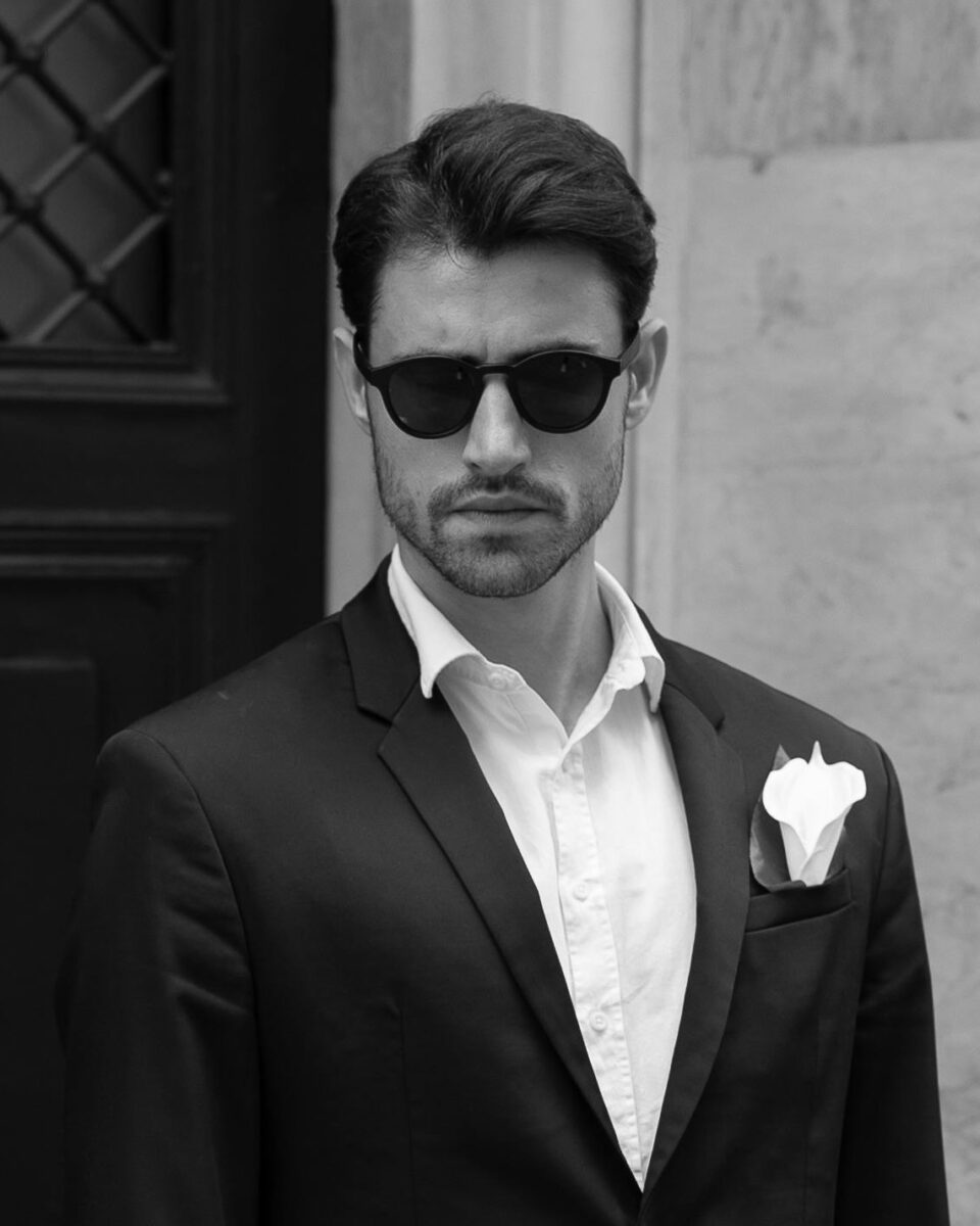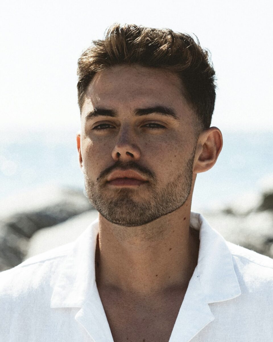 A casual run-through of the fingers with some product should do the trick; tapered sides are essential, especially if you’re playing around with blending facial hair with your short haircut.