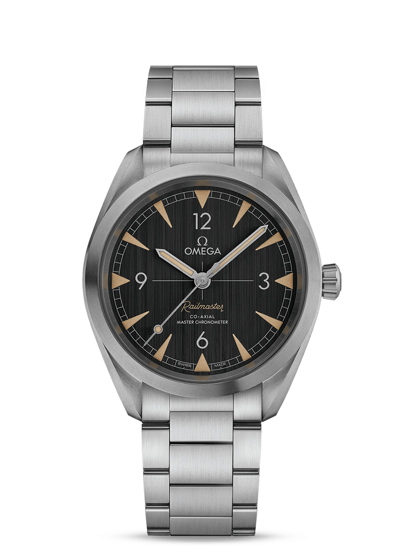While there was a limited edition reissue of the ’57 Omega Railmaster, the modern standard production reference is a very compelling timepiece, featuring a 40mm steel case and a matching stainless steel bracelet. The vertically brushed black dial contrasts nicely with the beige-tone luminous hour markers, which in turn work nicely with the railroad minute track. Beneath the dial is the 55-hour power reserve Omega Co-Axial Master Chronometer Calibre 8806, which just like its forefathers, is anti-magnetic and can withstand magnetism of up to 15,000 gausses.