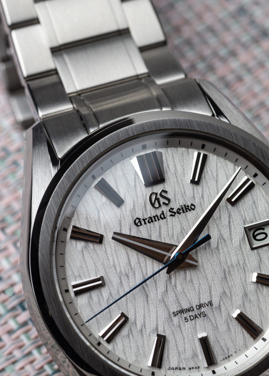 Before we get the loupe out, it’s worth reminding ourselves of just how important the launch of the first “White Birch” SLGH005 was to Grand Seiko when it was announced in 2021. It was the first regular production timepiece in the Grand Seiko catalogue to feature the brand’s new Hi-Beat Automatic 9SA5 movement (following the SLGH002 and SLGH003 Limited Editions), as well as debuting a fresh approach to dial making that was less subtle in its finish, but all the more impressive for its boldness. As is so often the case with Grand Seiko watches, the dial of the timepiece was inspired by the white birch forests of Shizukuishi, where the watchmaker’s mechanical watchmaking studio is located.