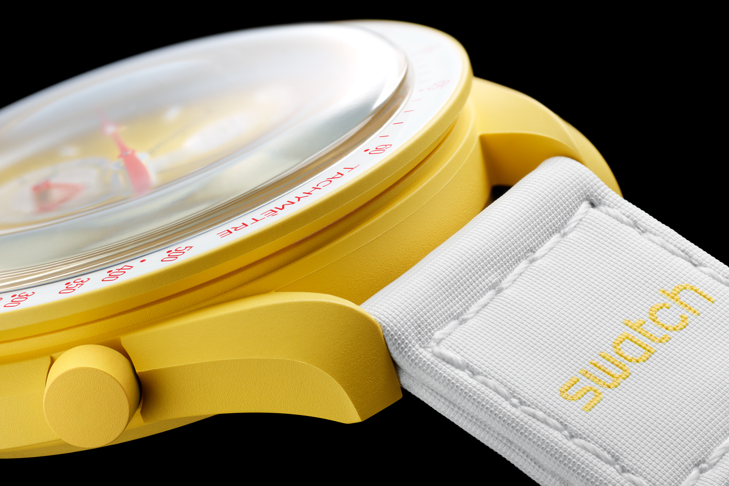 As you might expect from Swatch, these MoonSwatches donโt feature manually wound chronograph movements; and are instead powered by a Swiss-made quartz calibre. Not only does this keep the collection affordable, but enabled the design teams to have some fun with the battery cover on the caseback, covering it with a NASA photo of various celestial entities.