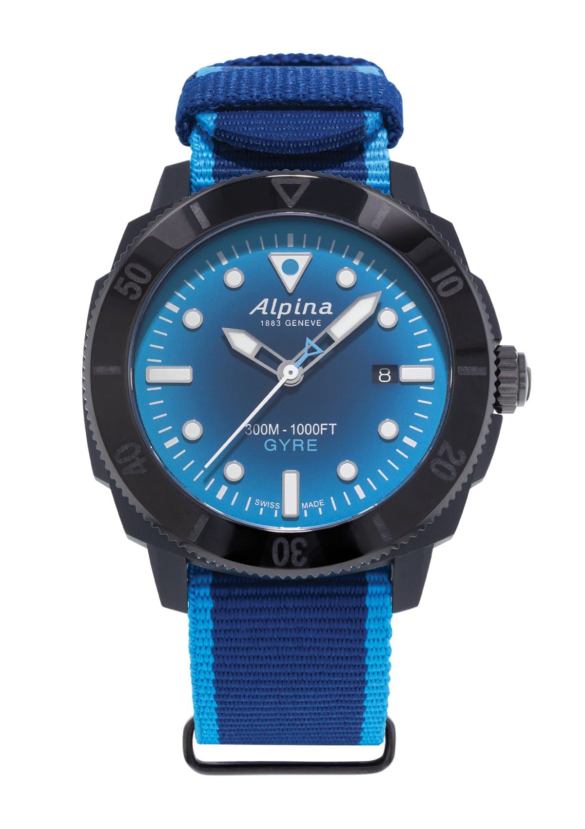 In partnering up with start-up Gyre Watch, Swiss watchmakers Alpina have presented an inventive line of dive-friendly timepieces perfectly aligned with a modern purpose and philosophy. The Seastrong Diver Gyre Automatic line was launched earlier this year to support World Ocean Day and partners Surfrider Foundation Europe, nodding to the need to protect the worldโs marine habitats.