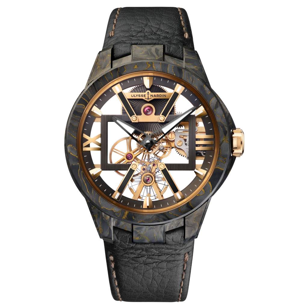 Carbonium Gold is a fusion of carbon and gold, resulting in the Skeleton Xโs head-turning 42mm case, all shimmering and flowing with black and gold waves to create a fascinating visual effect. And beneath all of that effervescence, sits a UN-371 manual winding movement โ based on the classic UN-171 โ with 3 Hz and a power reserve of 96 hours.