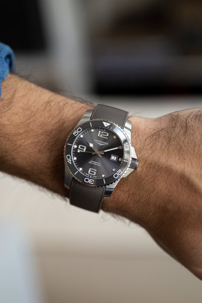 With 300m of water resistance, a sound unidirectional bezel and an optional (and favourable rubber strap on also on a deployment clasp with diving extension) the HydroConquest is a competent diver and daily wearer. The 41mm case diameter is agreeable for almost any wrist size and slips easily under a shirt cuff if you wish to wear it formally, although I recommend the steel bracelet if you plan to wear it with a suit.