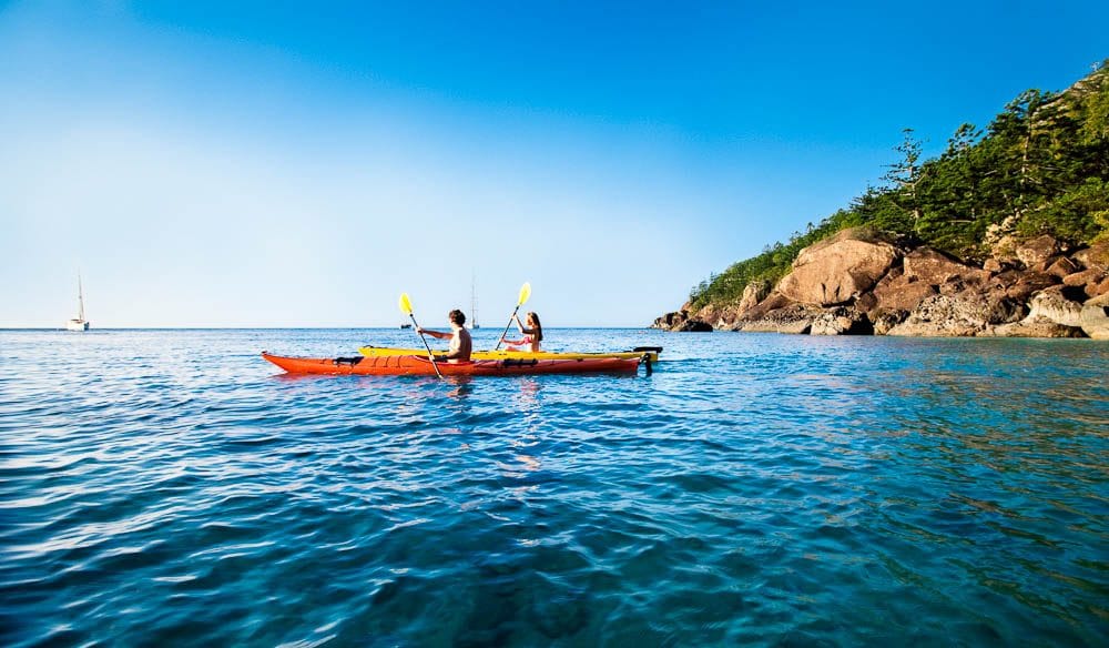 The Ngaro Sea Trail in Queensland will take you through the Whitsunday Islands if youโre opting to kayak the vast circuit, although be prepared to break land a few times. The trail is best tackled through a combination of kayaking and hiking when youโre venturing across the South Molle, Hook, and Whitsunday islands. The trail is known as one of the stateโs โGreat Walksโ for good reason, and itโs certainly worth it to mix it up across a few days rather than kayak for half-day and not experience the full potential of this special part of the country. It can be quite overwhelming for beginners so itโs wise to hit up Salty Dog for one of their guided tours, ranging from half-day to a full 6 days with gear supplied.