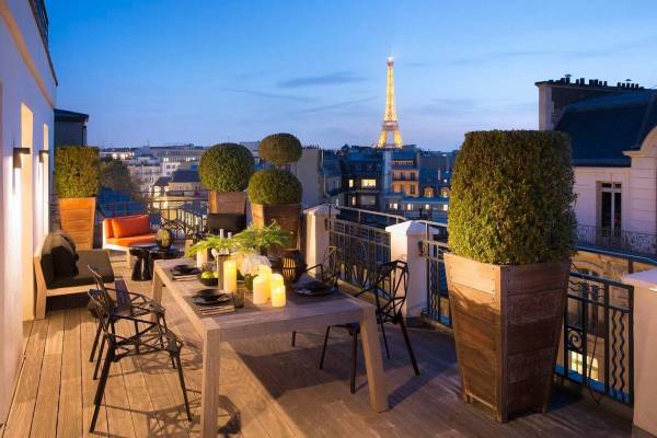 Experience traditional Paris living in this wonderfully authentic two bedroom apartment. Recently renovated to combine classic French architecture (wooden floors, exposed beams and antique furniture) with modern amenities, this charming abode also features a rooftop terrace to take in the panoramic views of the city.