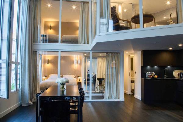 Located just a few blocks away from the famous Place des Vosges and Le Marais areas, this contemporary loft design with a monochrome colour scheme oozes class and sophistication. The secluded outdoor area is great for a quiet wine during a warm French eve while the interior is inviting.