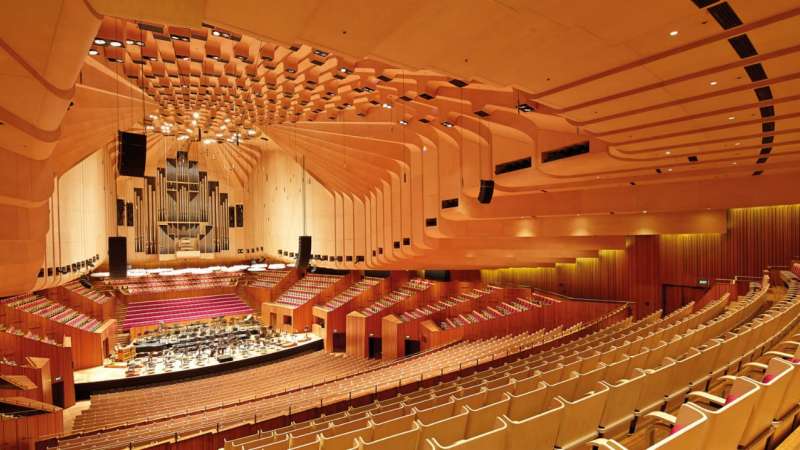 The 2,000-seated Concert Hall is the soul of the Sydney Opera House. Itโs where the Houseโs greatest hits are forever etched into the high vaulted ceiling and birch timber framework, echoing historic moments like when Arnold Schwarzenegger took the stage after winning his final Mr Olympia body-building title in 1980, or when Stephen Hawking appeared via hologram to give a lecture alongside his daughter Lucy Hawking in 2015.