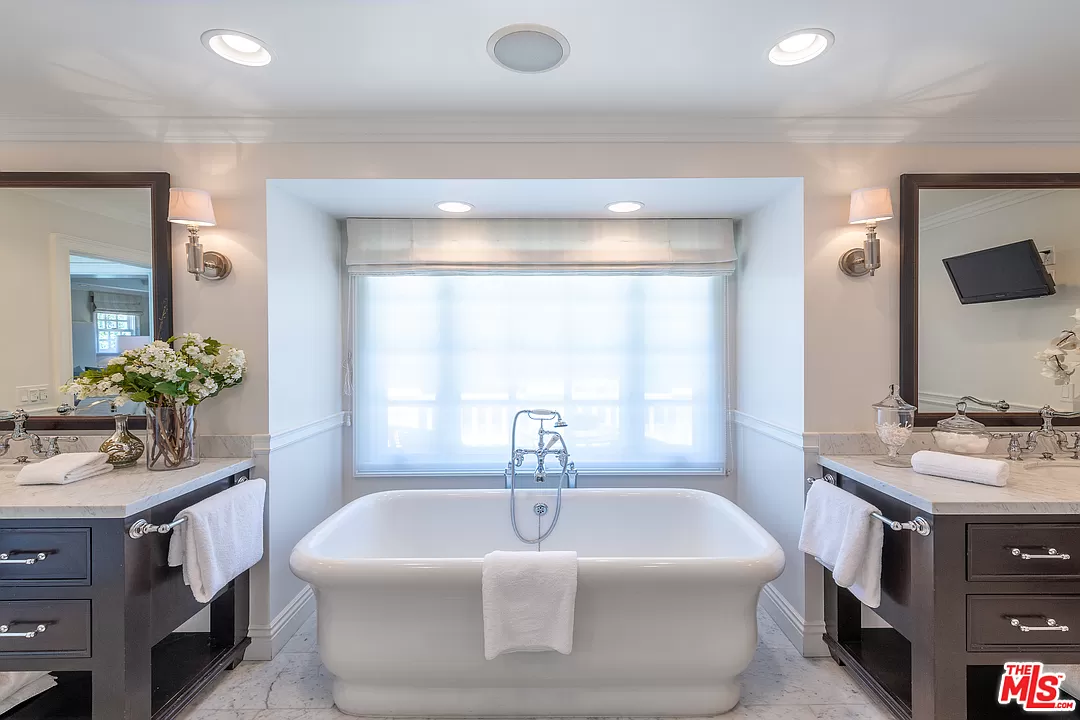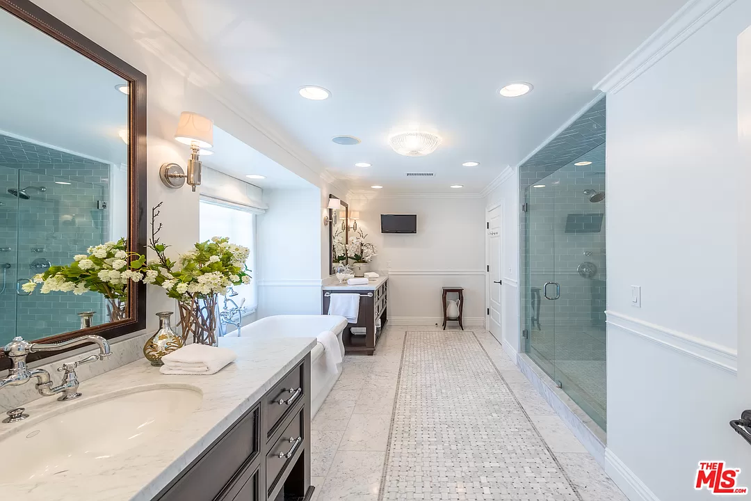 As previewed by the show which made it famous, thereโs a gourmet kitchen complete with Sub Zeroes, pro-Wolf ovens, and a honed marble island thatโs only accentuated by a โcrispโ white aesthetic; thereโs a great room which opens to an ever greater yard, accompanied by a pool and sports court; and in the master suite, thereโs a wraparound balcony adjacent to a โspa-likeโ bath.