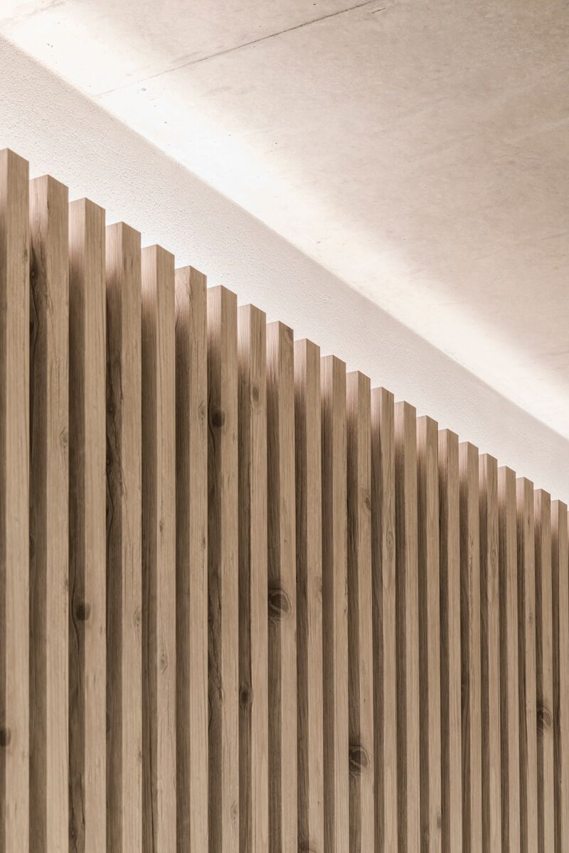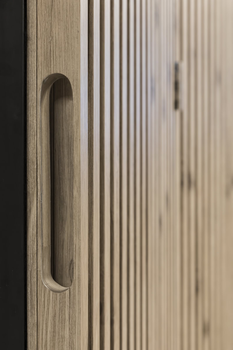 The answer to her problem was found in Japanese-made aluminium battens with a photorealistic timber finish — thereby providing the effect of timber without the potential issues of using natural wood.