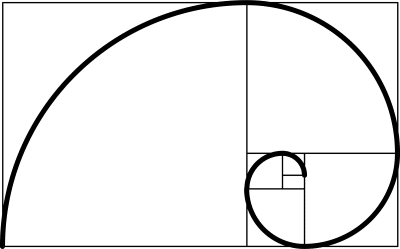 The above is an example of what occurs when The Golden Ratio is divided multiple times, beginning with the 1:1 square on the left. The pretty spiral travels through each square to assure of us of its accuracy. The top right square is the 1 to the larger left squareโs 1.61.