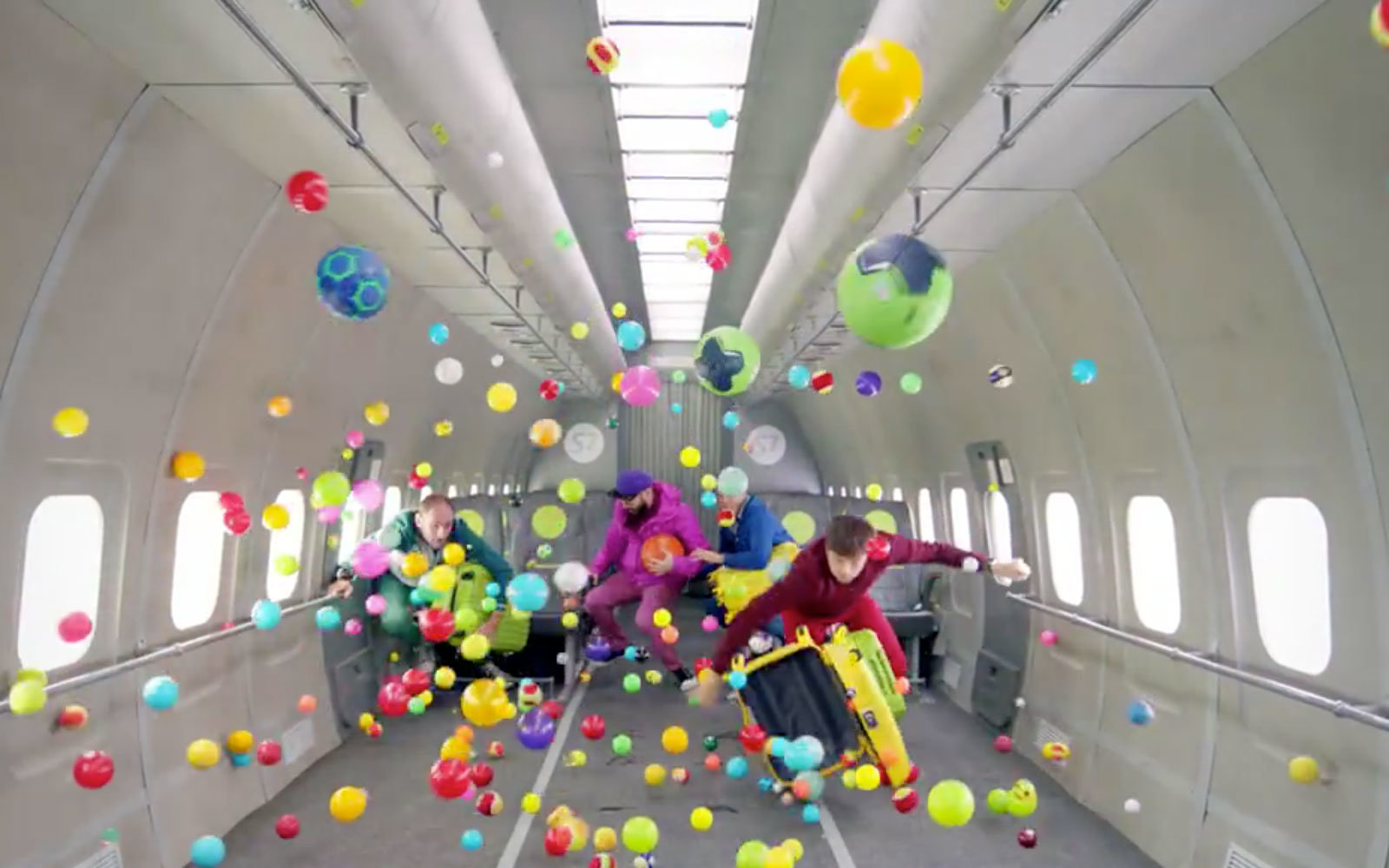 Then it was onto shooting, though the video appears to be a single take, it is actually 8 different takes stitched together. The reason for this is that the zero gravity period only lasts for 27 seconds, after that period it takes the plane 5 minutes to get recover and reach zero gravity again. To counter this the band would shoot their 27 seconds of weightlessness, pause in spot wait for the plane to round back and continue on with the clip. The music was split into 21-seconds sections of music that could be coregraphed with the zero G flight, they performed the song slightly slower on those initial recordings before speeding it back up in the editing process. All in all this was an incredible achievement of modern technology and some good old fashion human creativity.