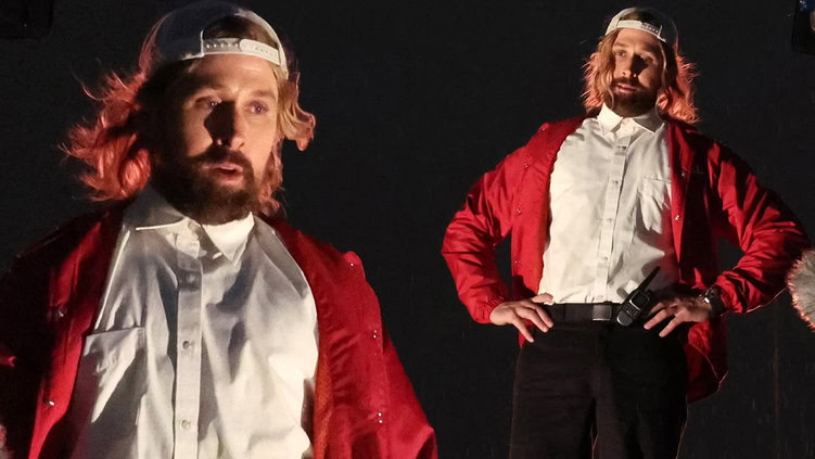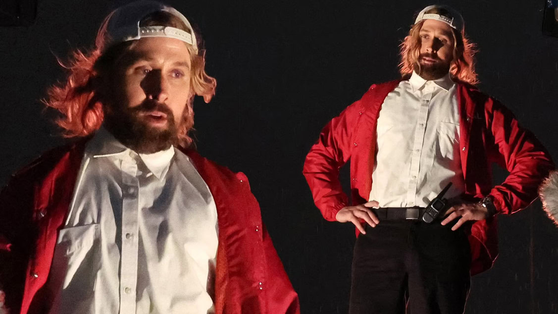 Perched on the rooftop of a multi-storey car park located in Sydneyโs CBD (Goulburn St to be exact), Gosling was recently captured sporting a bushy beard with a blonde wig, a baseball cap, and in a โvalet parking attendantโ costume. Certainly schlubbier than what weโre used to seeing. At least not since Lars & The Real Girl.