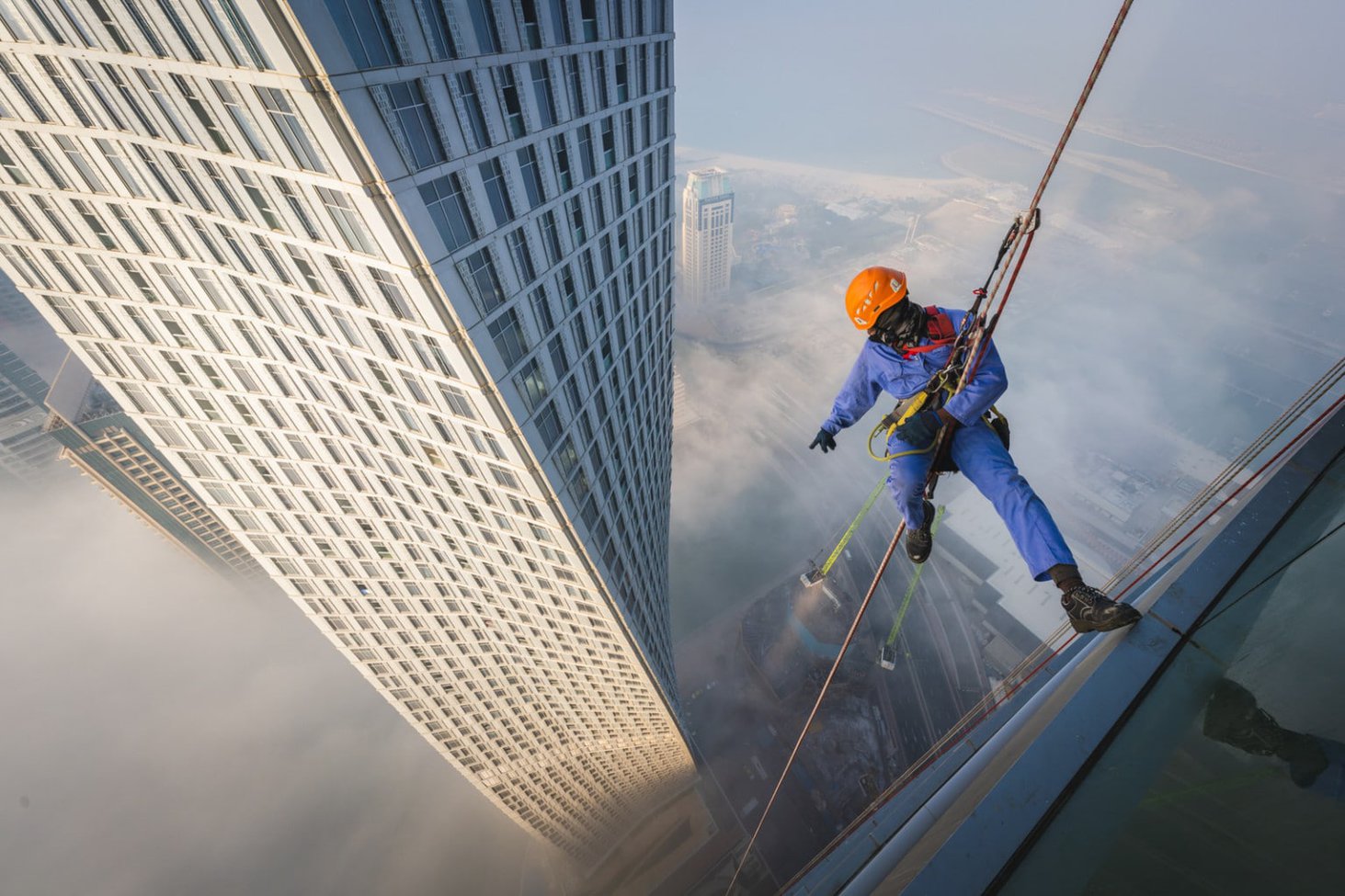 According to Peta Pixel, Dros was on a rooftop of one of these ultra-tall skyscrapers with the goal of shooting the cityโs immense skyline under foggy conditions. That was before he encountered Dubaiโs adventurous window cleaners.