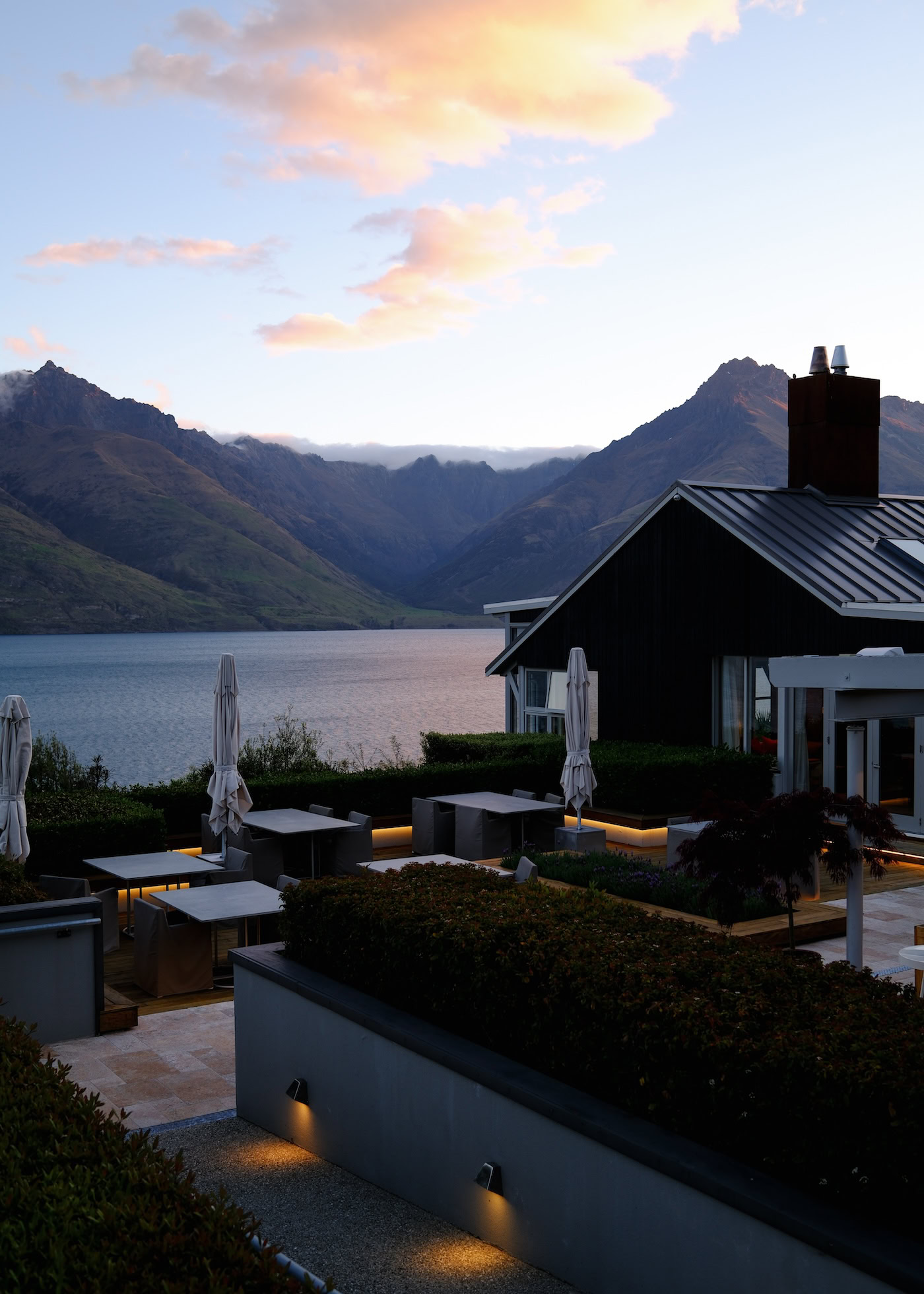 Just a 5-minute drive from downtown Queenstown, Rosewood Matakauri sits in a private bay on Lake Wakatipu and is an exercise in understated elegance. After settling in, John and I had a dip in the beautiful hotel pool before settling by a fire on the hotel’s main terrace to recap the day that was. As the sun started to make its way behind the mountains, it was time to head into town for dinner.