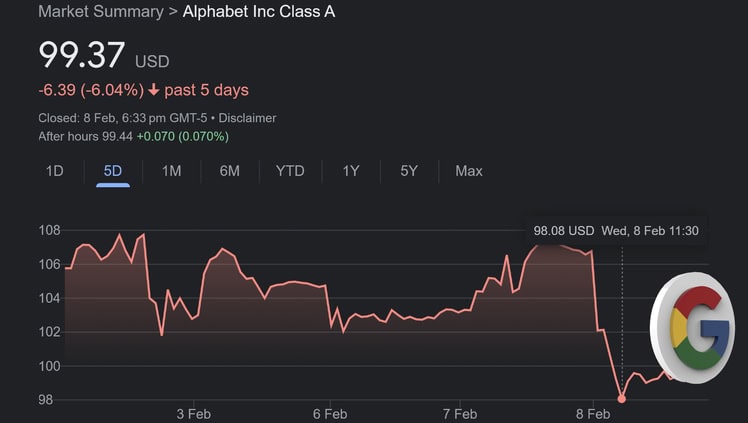 After the ChatGPT rival served up inaccurate information during a promotional video, fuelling concerns it was falling behind to the Microsoft-backed startup OpenAI, a major selloff of shares in Google parent company Alphabet Inc (NASDAQ: GOOGL) occurred, wiping out approximately US$100 billion (AU$144 billion) of its market value.
