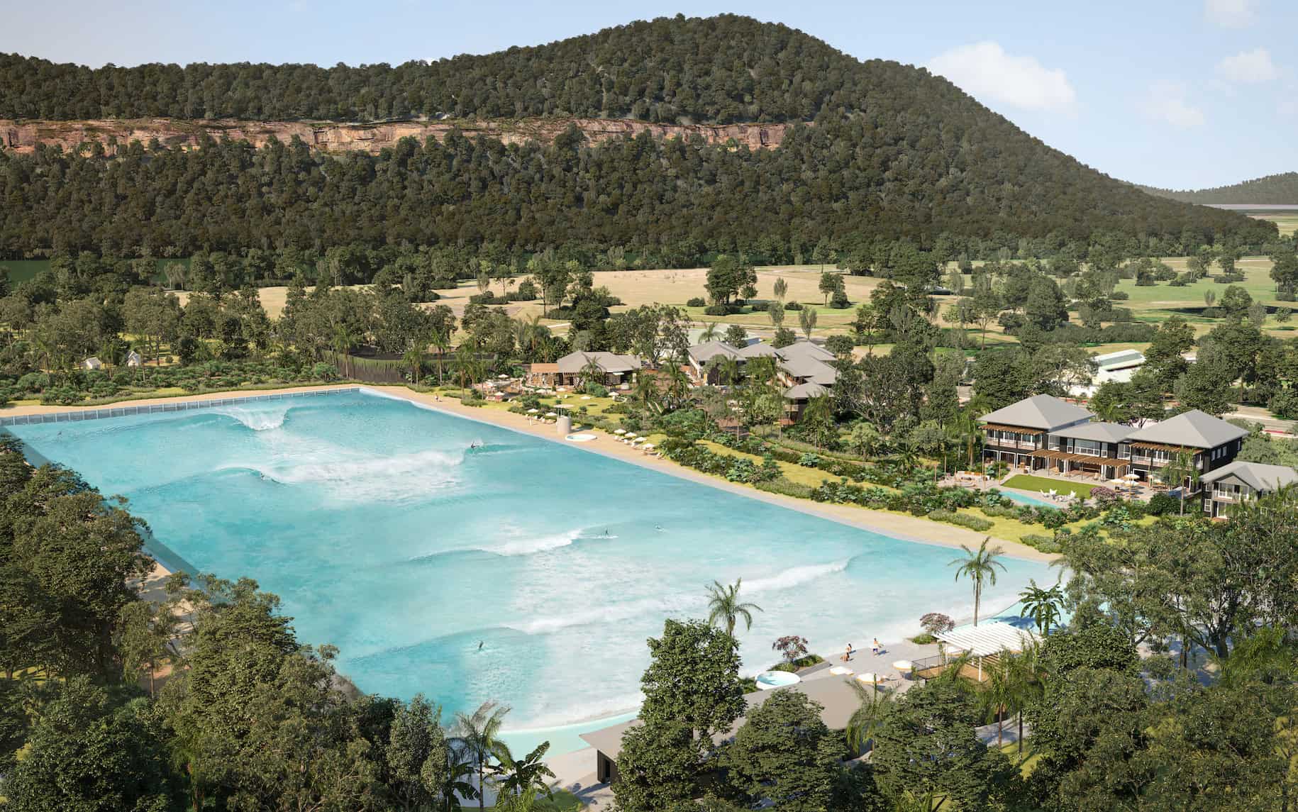 Located just an hour from the Sydney CBD or 45 minutes via boat from Palm Beach, Wisemans Surf Lodge has its sights set on a state-of-the-art wave pool that’s approximately “four football fields stacked”, capable of generating swells up to 2.5 metres high on the main peak and ideal beginner rides on the secondary peak every 17 seconds, as well as rides with a duration of 10-12 seconds.