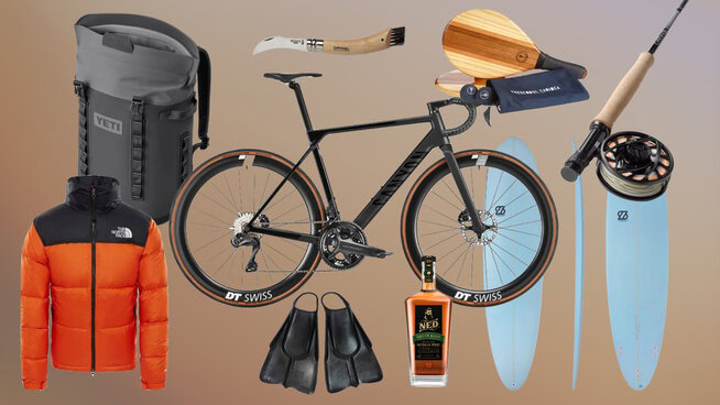 For the forager (either culinary or medicinal), you’ll never go wrong with an Opinel No. 8 Mushroom knife ($44.90), but if he’s a serious outdoor cook who fancies himself as a Frances Mallmann, a Camp Oven Tripod ($180) and a beautiful made cast iron camp oven ($300) might actually entice you to head out on a trip with him. And if he can’t cook for shit? At least his body will be warm with a The North Face 1996 Retro Nuptse Quilted Shell Hooded Down Jacket ($480), the beer in his hand will be cold with a Yeti Colster Stubby Holder ($39.95), and he can snack on some Bareback Billtong ($6.50) (while he figures out how to get the fire started in the first place.