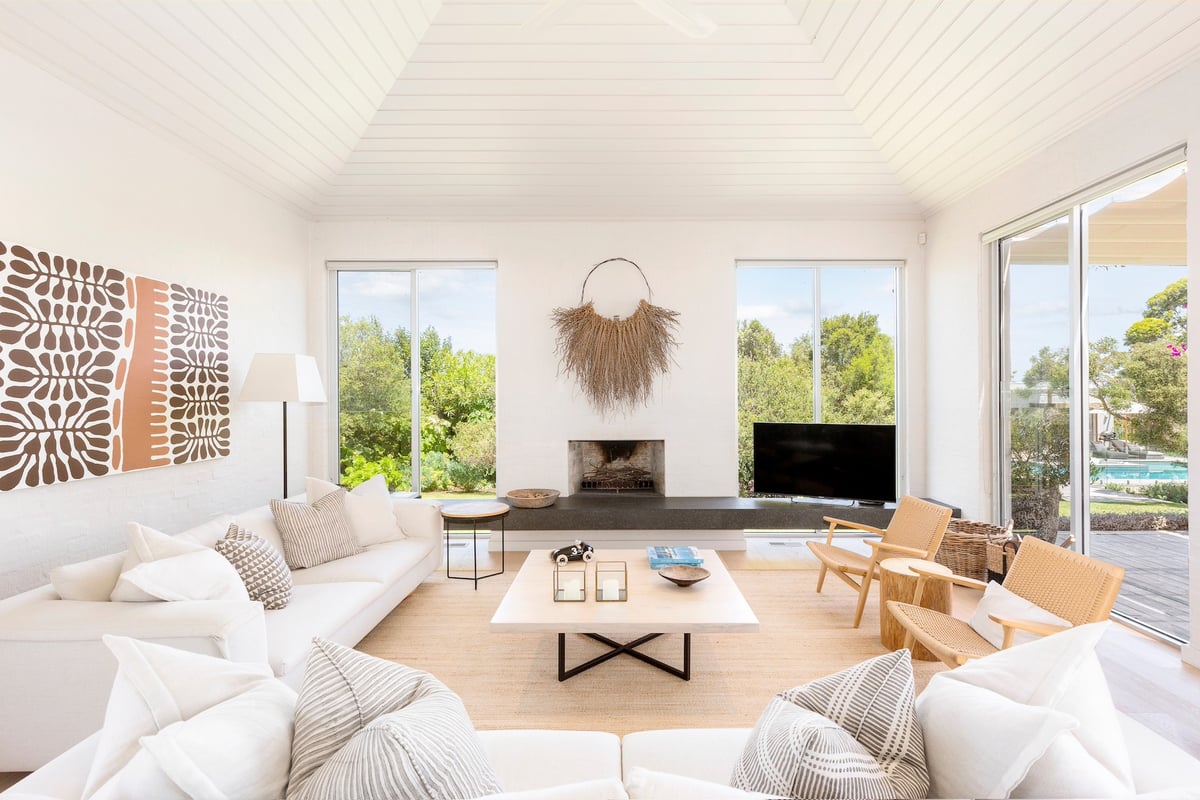 Entering through the internal courtyard and past the threshold, inside, youโll find a tasteful balance between classic beach pad and activated modern space with all the necessities โ 4 bedrooms, 4 bathrooms, expansive open living space, and completely fitted kitchen.