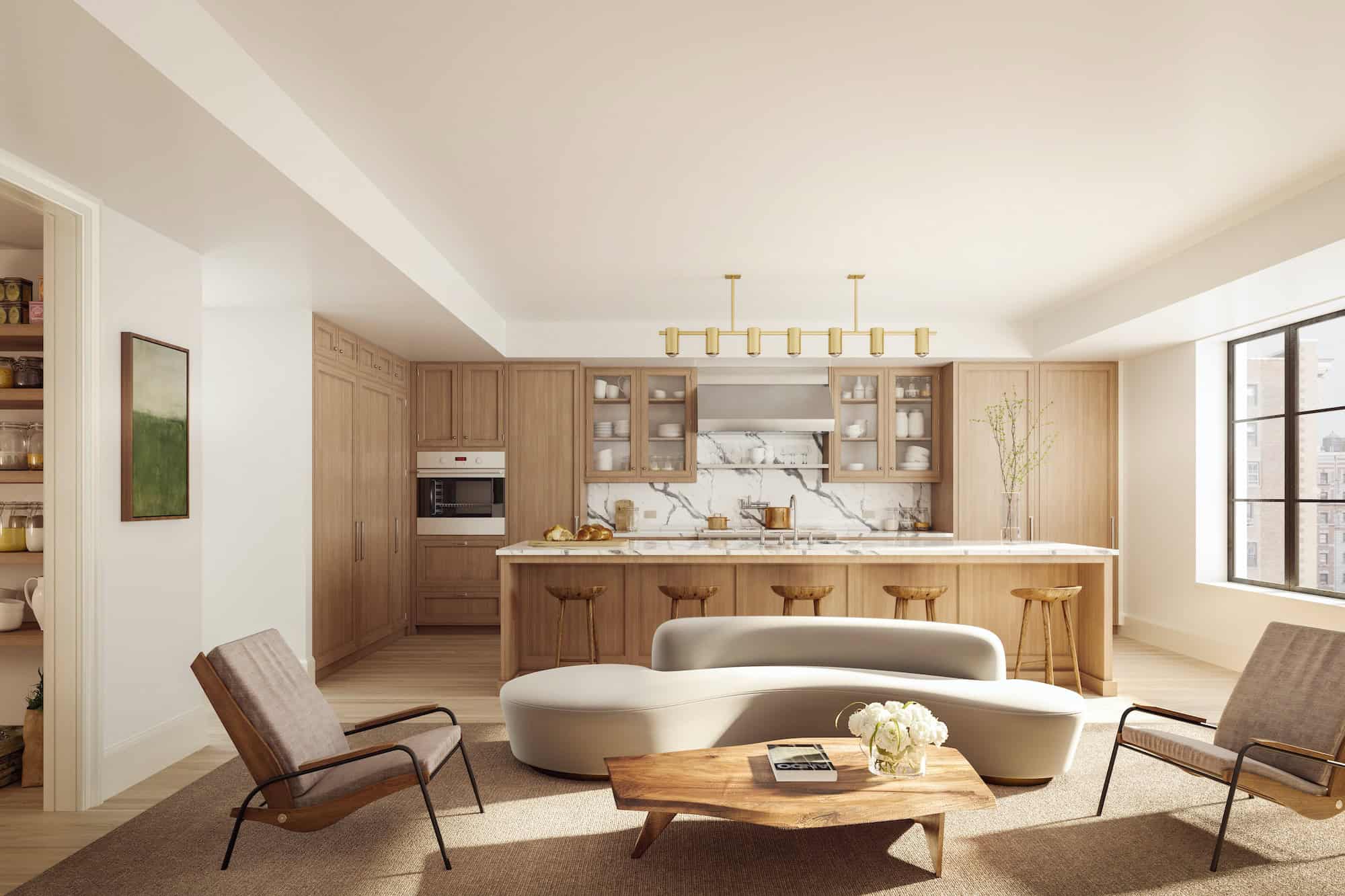 For those who entertain, the chefโs kitchen will be able to handle any manner of private event you throw at it. Again, Christopher Peacock makes an appearance in the handcrafted white oak cabinetry, complemented by the polished Arabescato marble slab countertops โ and letโs not forget about those slick Sub-Zero, Wolf, and Miele appliances.