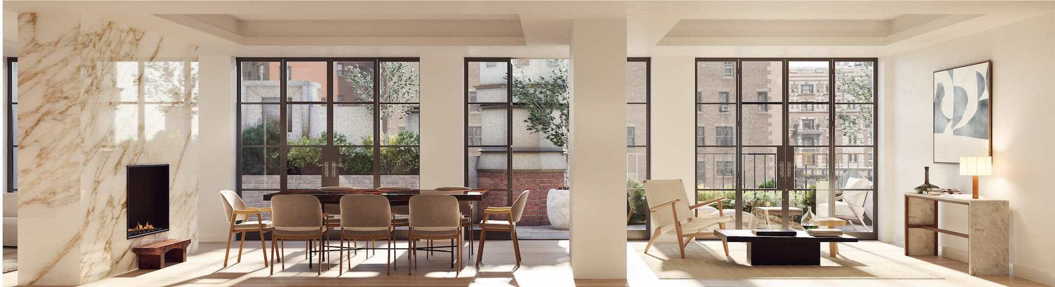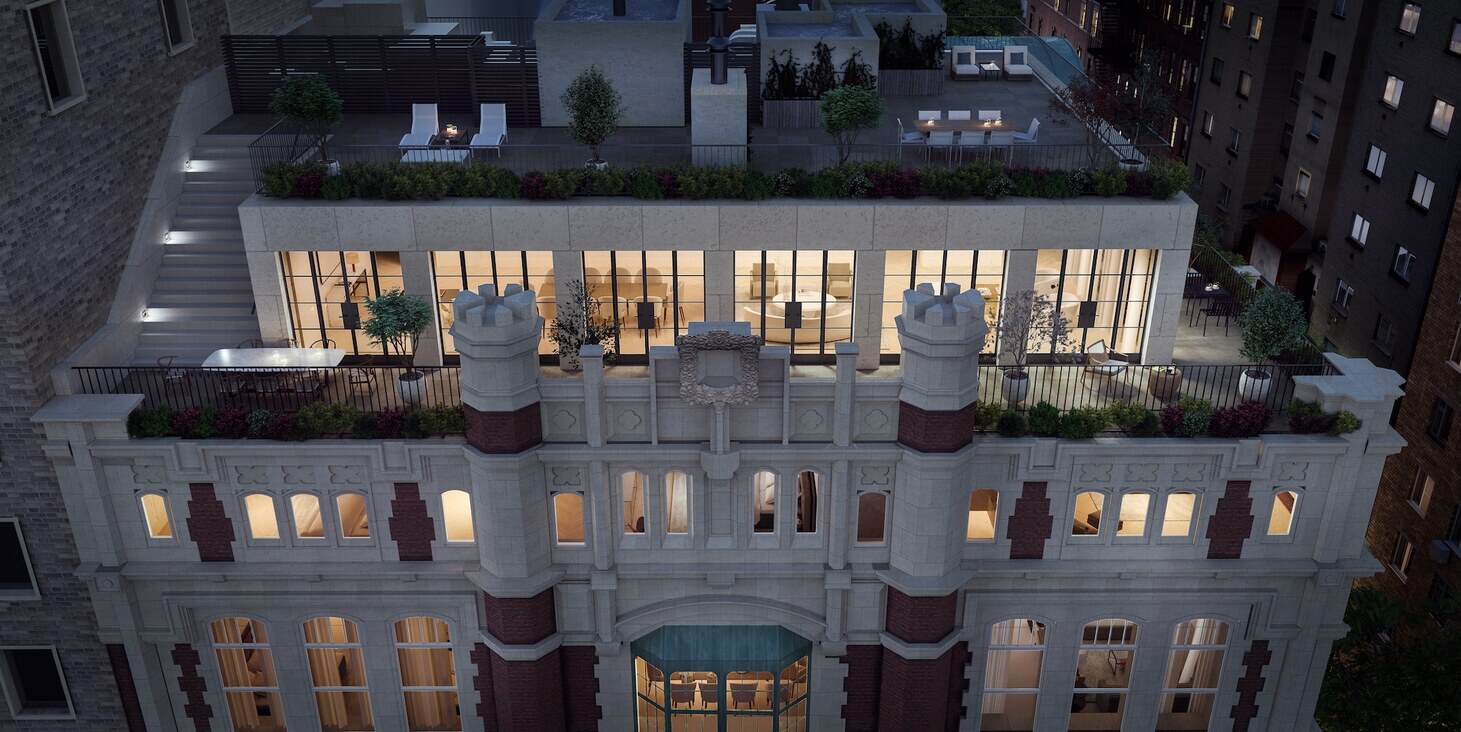 555 West End Avenue will soon house a total of thirteen luxury condos with no more than two per floor. Prices start at US$7.9 million; eight of the twelve released condos having already been spoken for โ and the thirteenth obviously being this US$22 million Terrace Penthouse, not yet purchased by ready to be moved into immediately.