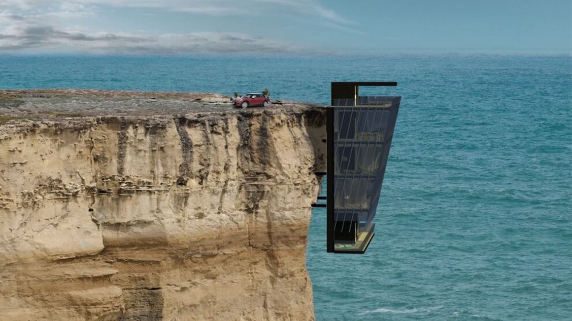 Inspired by barnacles that cling to the hull of a ship, Cliff House is designed to hang from the cliff as a natural extension of the environment. The floor-to-ceiling windows provide breathtaking views of the surrounding coastline and open sea, while the house itself utilises prefabrication methods, each storey attached to the cliff face using specially engineered steel pins.