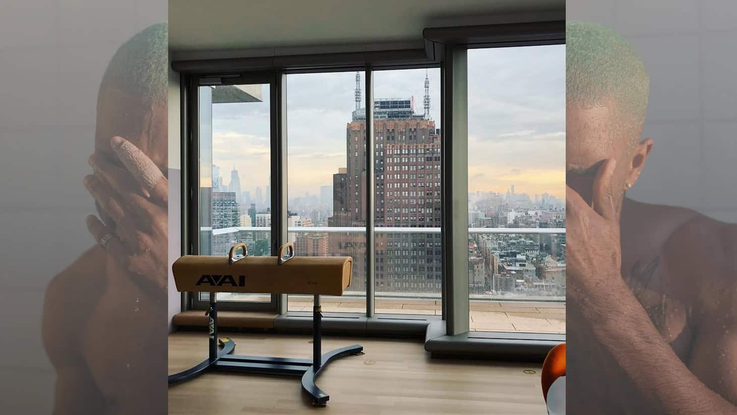 Elsewhere in the apartment, Frank Ocean has installed a domed pendant light with adjustable door shades to control the light in his kitchen. At the same time, he has a mirror originally designed by the Memphis Group founder Ettore Sottsass. The real Patrick Bateman kicker is the Avai pommel horse he has before the door to his balcony, which isnโt hard to imagine forming a critical part of the American Psycho morning workout.
