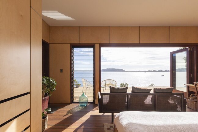 As the property can only be accessed by boat, there is limited electricity and none of the usual perks found at your average holiday home. Itโs for this exact reason there is a significant array of solar panels and a sophisticated water collecting system, while waste needs to be processed on-site by the occupants and picked up weekly by the council.