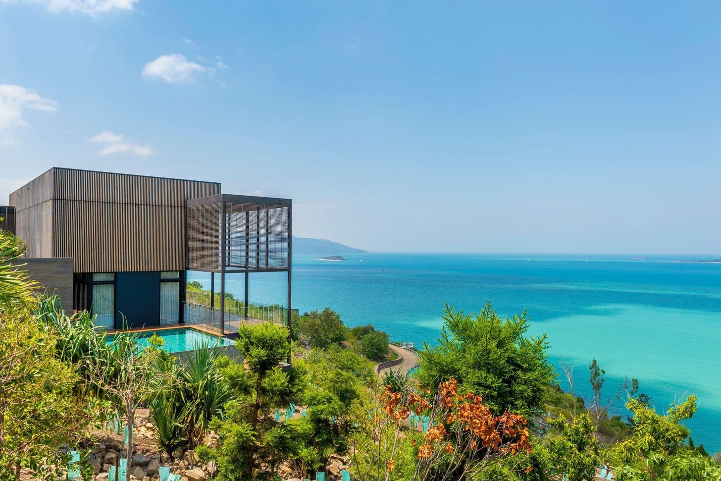As Queenslandโs very finest hill-top retreat, seclusion has never looked, sounded, nor felt โ in the spiritual sense โ more satisfying. Waking up to the Great Barrier Reef, after all, is something thatโs pretty damn hard to compete with. Comprised of โsleek yet simpleโ materials in line with the landscapeโs palette and geometry, this pairing of natural and man-made elements is one which rivals fresh Coromandel oysters and a glass of Chablis on a balmy summer afternoon.