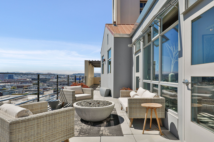 If youโre in need of some fresh air, the penthouse also comes with a 1,300-square-foot wraparound deck that offers incredible panoramic views of San Francisco.