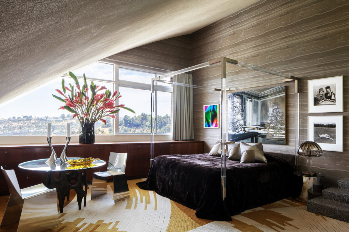 The home is rich with design detail, from the terrazzo flooring and the coloured stained glass windows to the swift contour of the master bedroom’s ceiling and the kayak-shaped pool outside (added in 2008), there’s a lot to love about this remarkable residence. The current owners, DreamWorks executive Bill Damaschke and his partner John McIlwee, purchased the Garcia House in 2002 from actor Vincent Gallo and are now listing the home for US$16 million (AU$23 million).