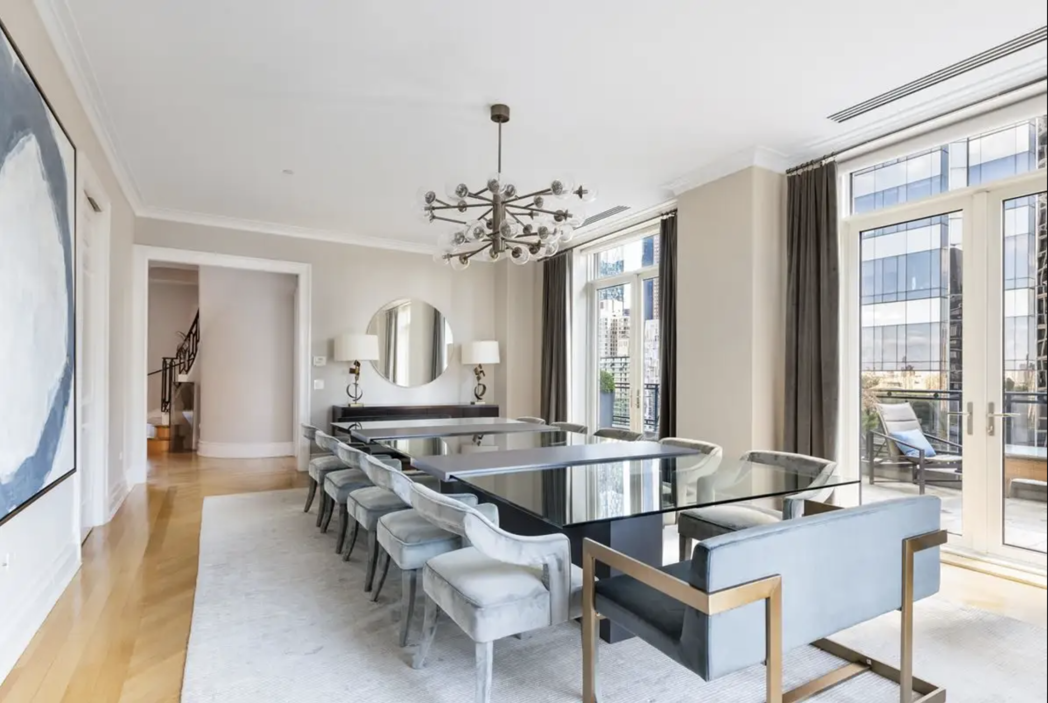 The building that hosts this ridiculous NYC Central Park penthouse offers a white glove door service, concierge, private restaurant, library, screening room, billiard room, pool and health club.