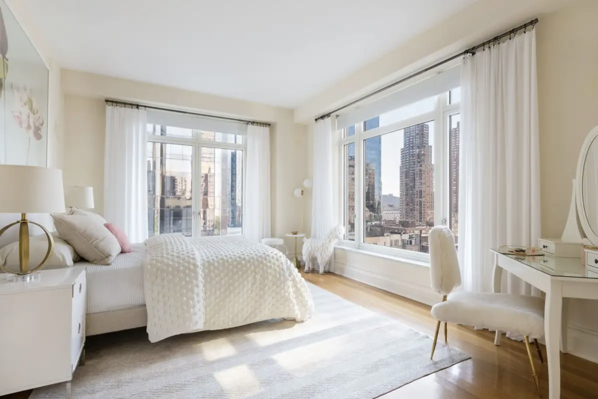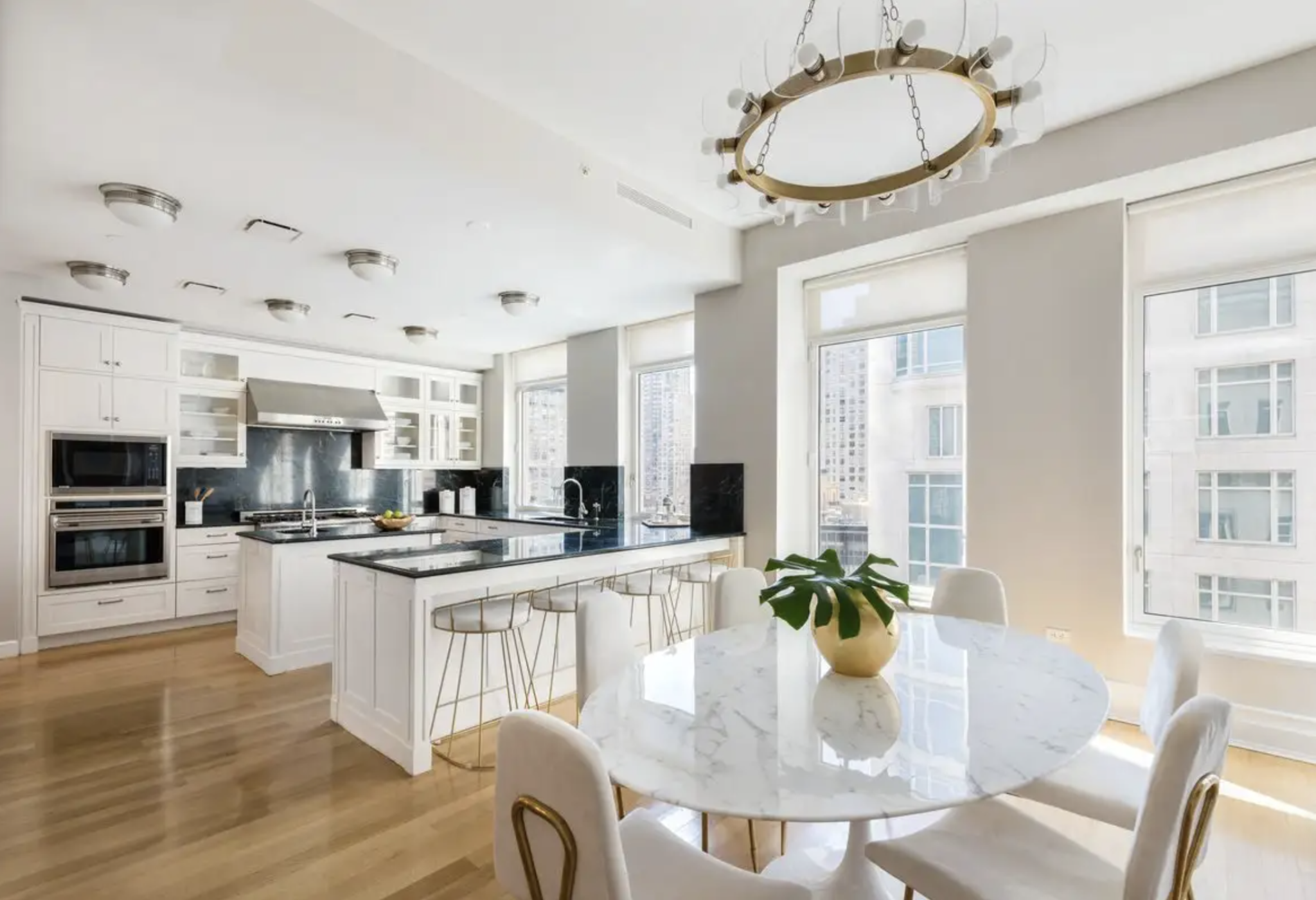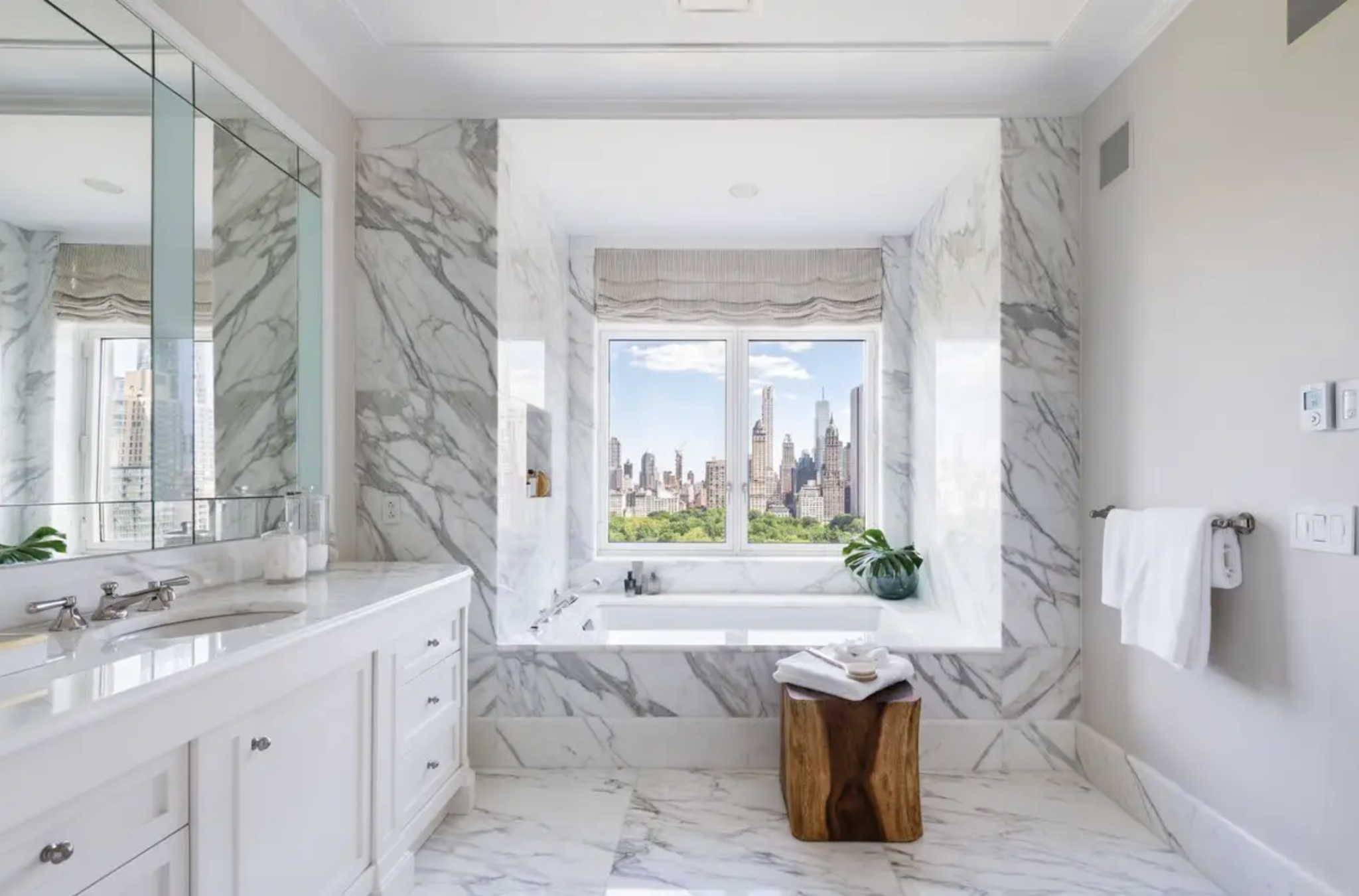 With exposure on three sides (East, South, West) and split across the 18th and 19th floors, this 590-square-metre duplex also boasts an additional 1,071 square feet of outdoor living space, including one terrace that wraps around nearly an entire floor with spectacular views of Central Park.