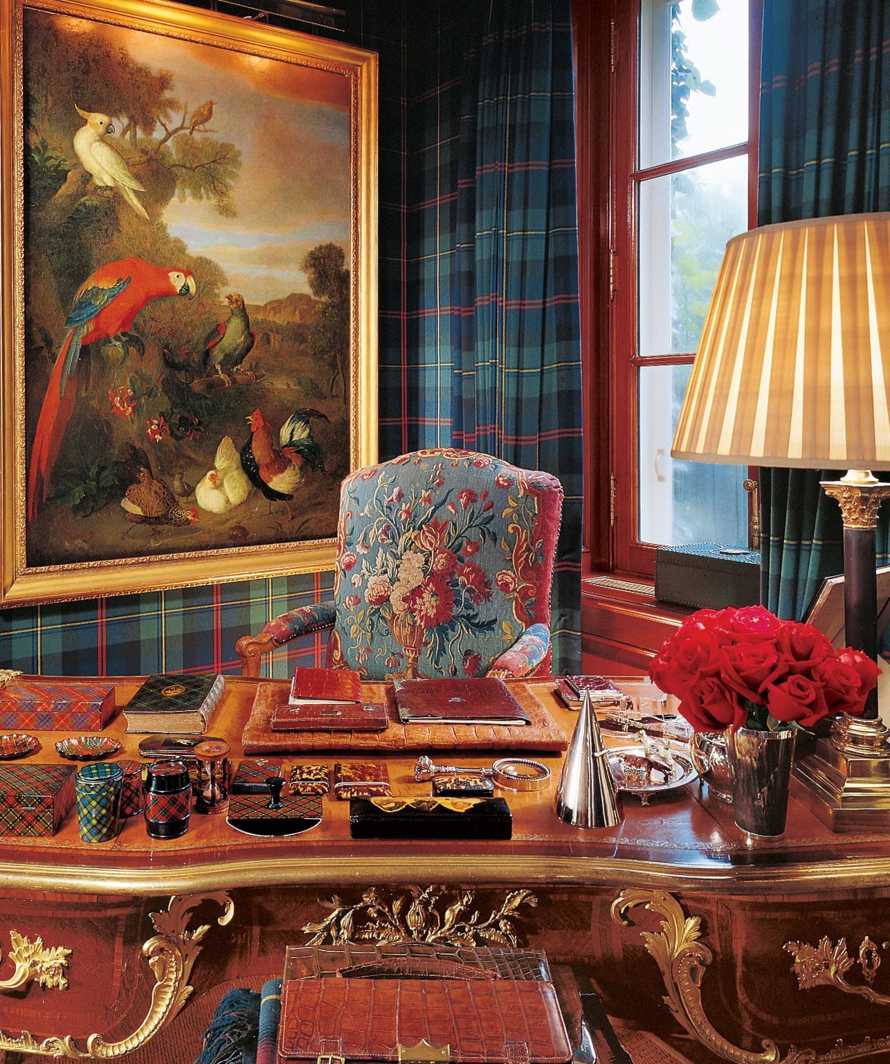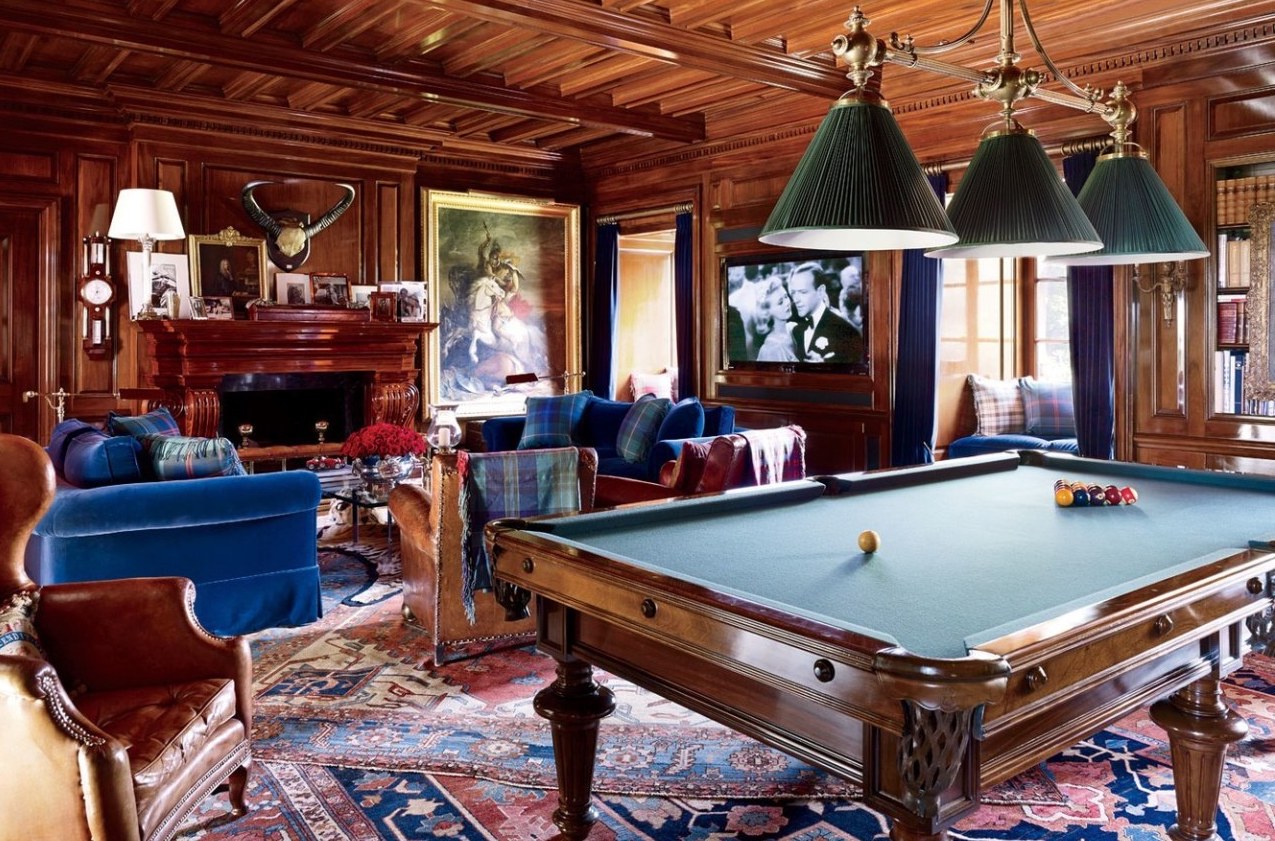 Built in 1919 and covering 17,000 square feet, the estate exudes opulence from its blend of mid-century Americana and refined English decor. The interior is decorated like something out of Downton Abbey, with lots of mahogany, paintings, rugs and marble integrated into the design. Scattered throughout are 18th-century tapestries, 19th-century oil paintings, tartan curtains and Osler crystal chandeliers, with Ralph even finding space for a pool table in his cluttered study.