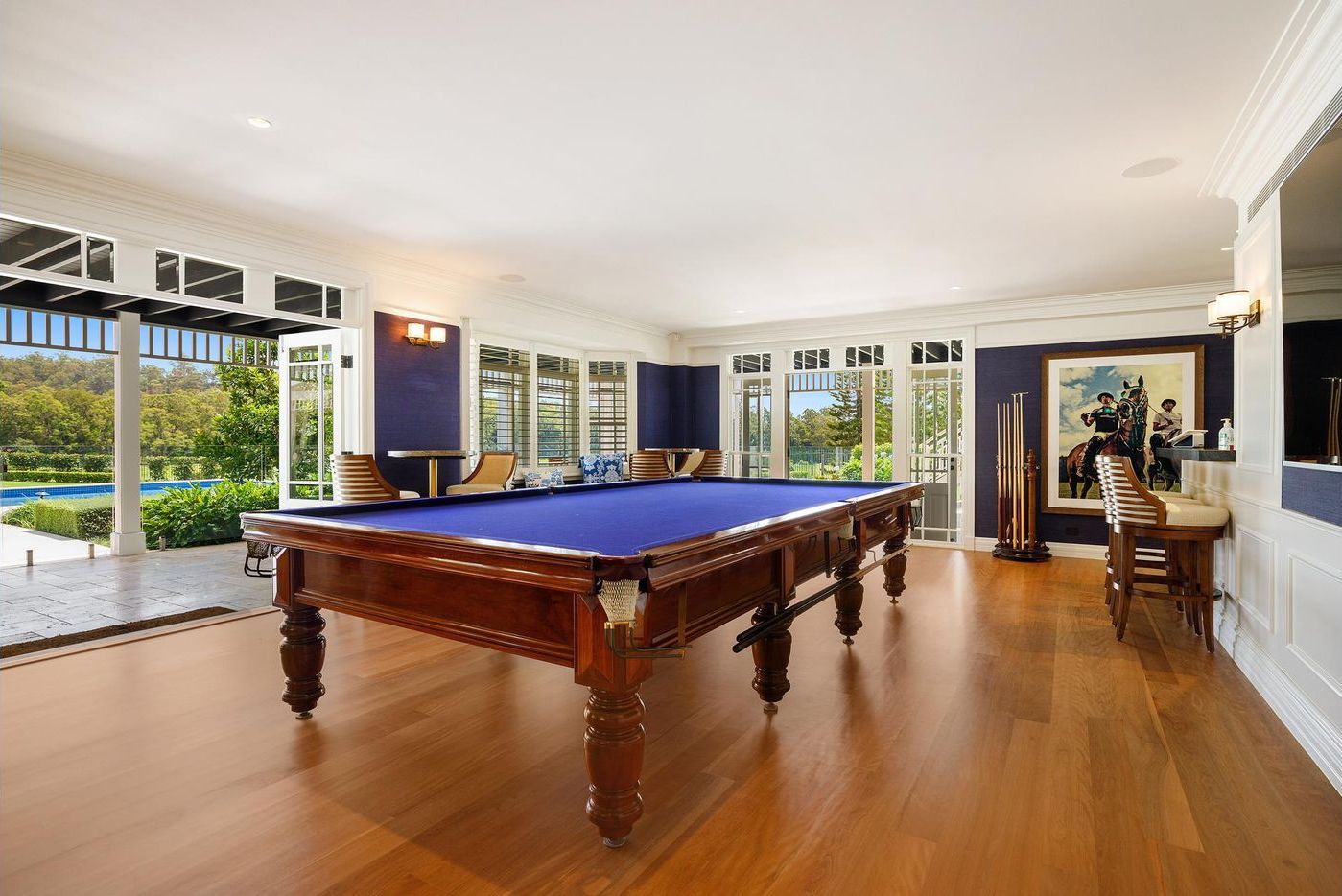 Within the immediate grounds of the property, occupants will also be able to enjoy the oversized pool, spa, sauna, and gym, before choosing a wine from the cellar and retiring to the cinema or the billiards room to relax.