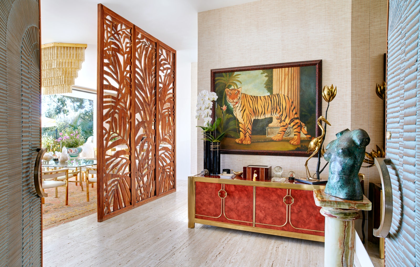 โWe wanted the house to be an homage to Trousdaleโs mid-century heyday, but more over-the-top and funky, without any rulesโฆ Think Slim Aarons meets Casino.โ