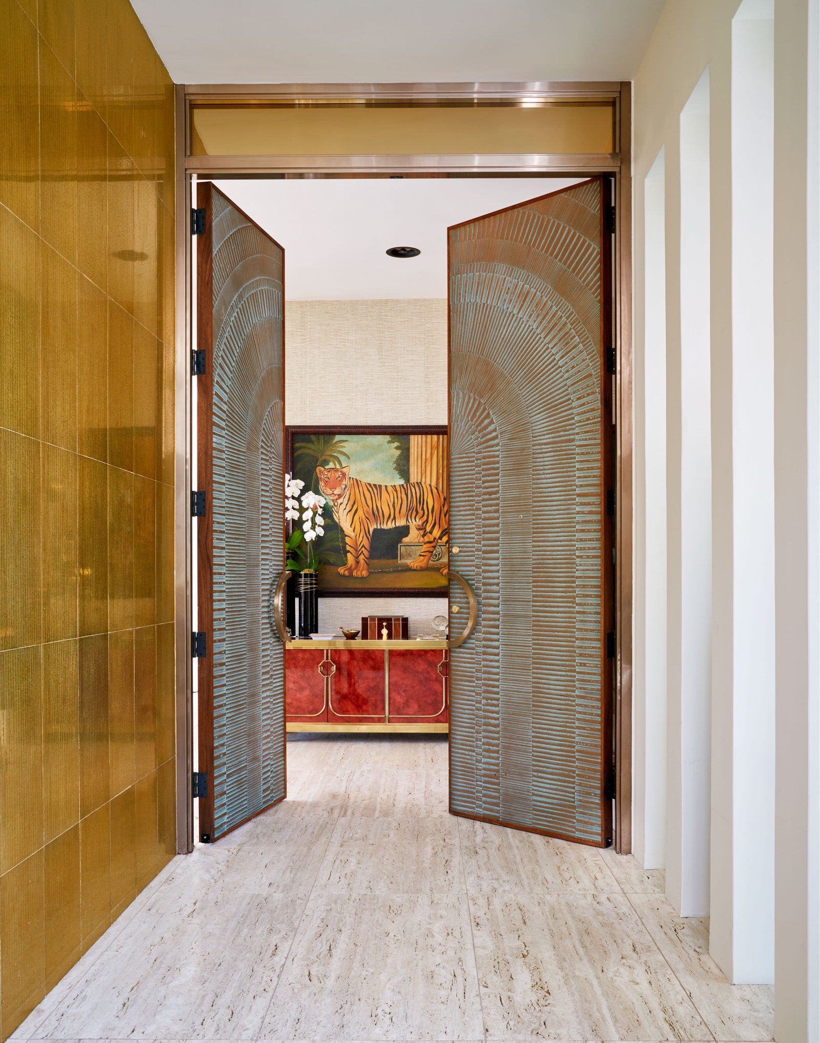 - Front entrance paved with gold tiles